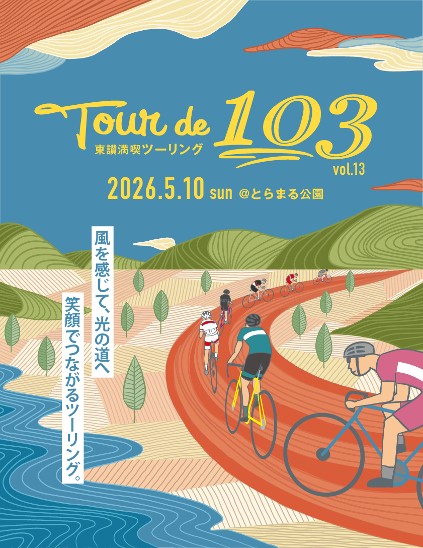 ツール・ド・103は瀬戸内海沿岸や、のどかな里山など東讃地区の美しい風景を堪能していただきながら走るツーリングイベントです。休憩所やゴール後の会場では飲食や東讃の産品でおもてなし。地元の食や文化を同時に楽しんで頂けたら幸いです。皆様のご参加を心よりお待ちしております。